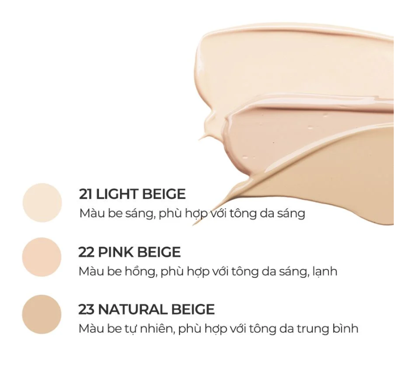 Tone 23 – Natural Beige: Cho những bạn có màu da tự nhiên hoặc da ngăm.