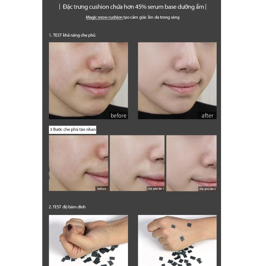 Có kết cấu dưỡng ẩm và nhẹ nhưng độ che phủ cao có thể làm cho làn da của bạn trông mịn màng và hoàn hảo.