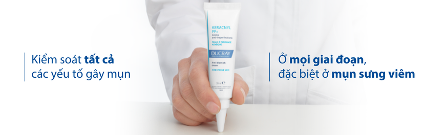 Kem dưỡng giảm mụn Ducray KERACNYL PP+ cream 5ml giúp giảm mụn, mờ thâm do mụn (có thể kết hợp với sản phẩm cải thiện vấn đề mụn) hỗ trợ giảm mụn sưng viêm, hạn chế để lại sẹo và giữ ẩm hiệu quả, đồng thời mang đến cảm giác dịu nhẹ tức thì. Công thức chứa đến 82% thành phần tự nhiên, không chứa hương liệu Ducray Keracnyl PP+ giúp quản lý toàn diện da mụn, ngăn tình trạng mụn tồi tệ hơn. Giúp tăng cường độ dung nạp khi kết hợp các phương pháp giảm mụn. Sản phẩm thích hợp cho cả người lớn và thanh thiếu niên từ 12 tuổi trở lên.